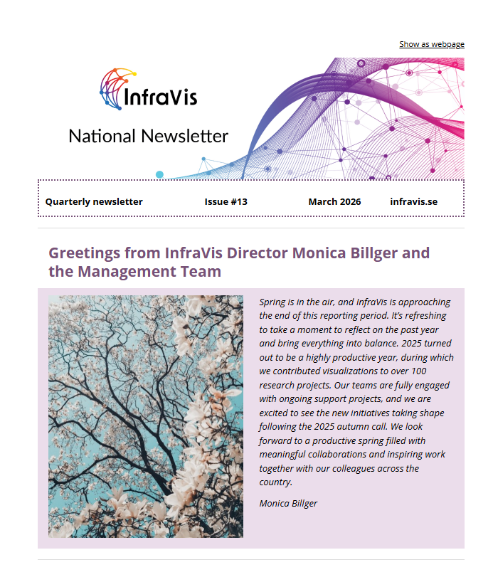 InfraVis helps you visualize research data from any scientific domain and gives you access to state-of-the-art visualization competence, support, equipment, training, and methods.