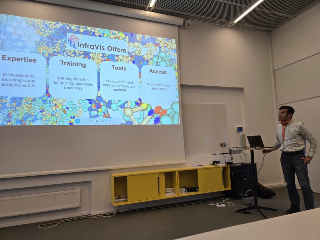 InfraVis Application Expert Alexandros Sopasakis, from the Lund University node, presented InfraVis to the audience, highlighting the many possibilities that InfraVis provides, whether it is a small request of a few hours or a large project of a few hundred hours.