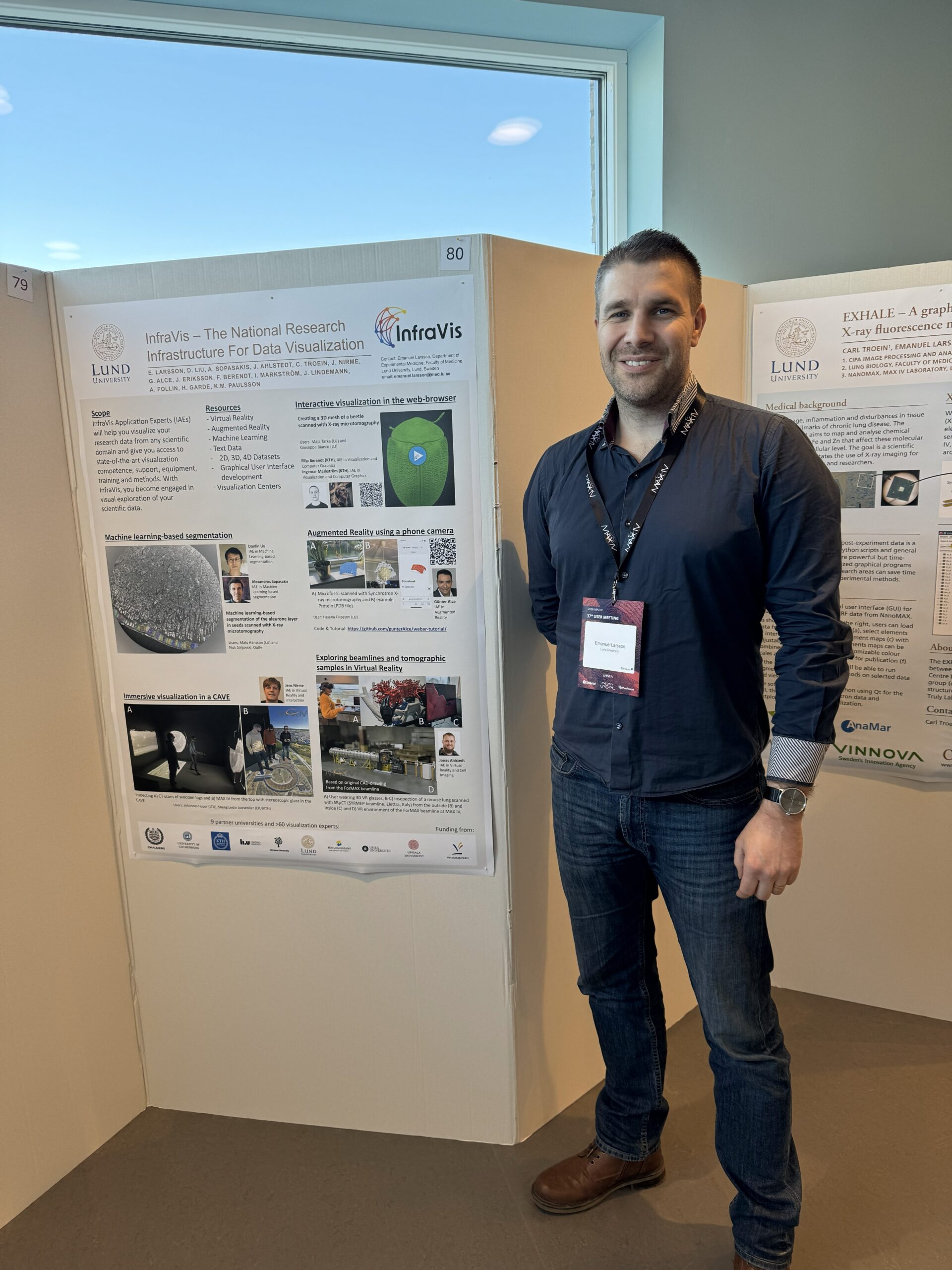 InfraVis contributed with two poster presentations, delivered by Emanuel Larsson, coordinator of the Lund University InfraVis node, and Carl Troein from the same node.