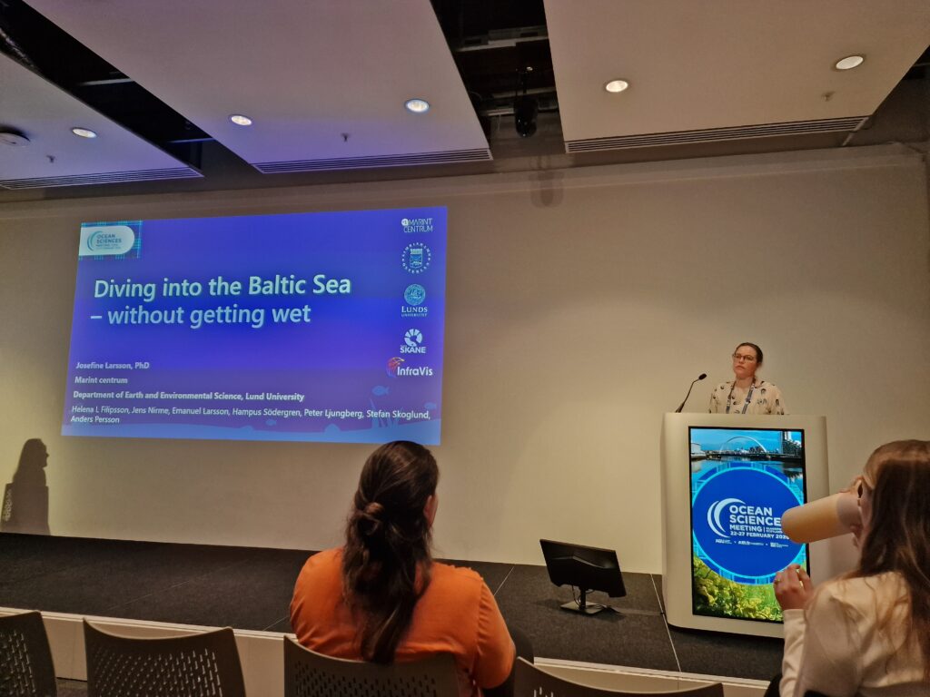 InfraVis user Helena Filipsson took part in the Ocean Sciences Meeting in Glasgow, a conference with 6000 marine researchers. Several collaborative InfraVis contributions were highlighted. The team presented their work on artificial cod reefs, demonstrating how InfraVis expertise supports automated fish recognition in underwater video material. In the outreach segment, visitors were invited to “dive without getting wet” through a VR experience that brought marine environments to life.