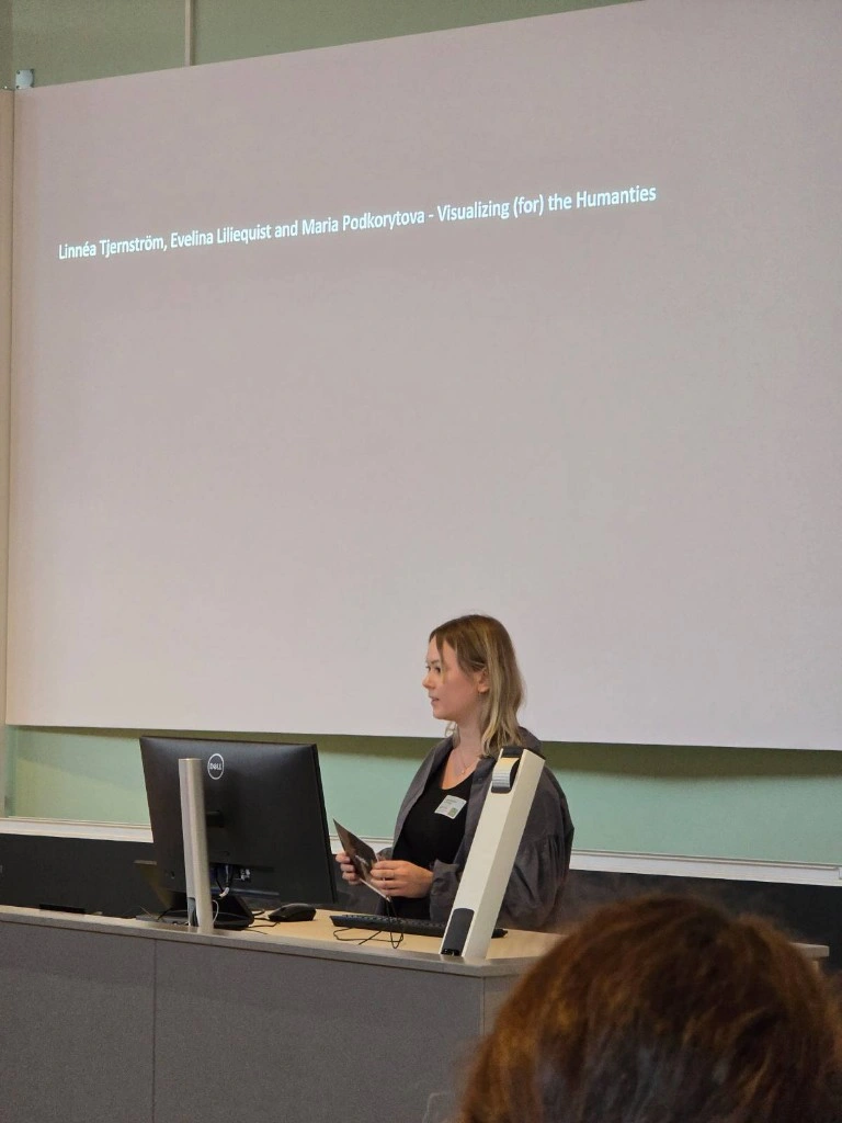 Linnéa Tjernström from the InfraVis node at Umeå University presented InfraVis at the HumInfra Concerence in Stockholm. HumInfra is a Swedish national infrastructure supporting digital and experimental research in the humanities. On 12–13 November 2025, HumInfra hosted its second conference, which aimed to showcase the various tools, resources, and initiatives designed to support digital and experimental research in the humanities, social sciences, and law, as well as to create opportunities for new connections among colleagues in the field.