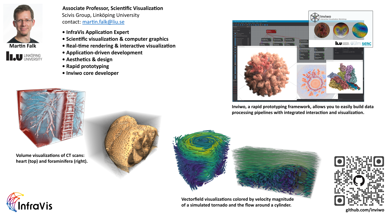 The InfraVis Faculty will consist of senior visualization researchers both from within InfraVis as well as external to it. The Faculty plays a key role in bridging research and visualization services by supporting scientific advancements, leading training initiatives, and acting as key contacts for different research areas requiring visualization expertise. Faculty members are appointed from partner universities, ensuring broad expertise across disciplines. The Faculty also provides external reviews to candidate applications to the annual user call for in-depth user support.